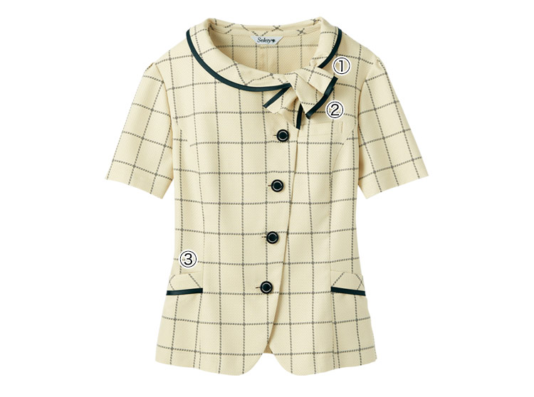 シックな印象のウィンドペン柄に華やかさを添えるリボンのオーバーブラウス。春夏シーズンに最適な、軽さと涼しさです。