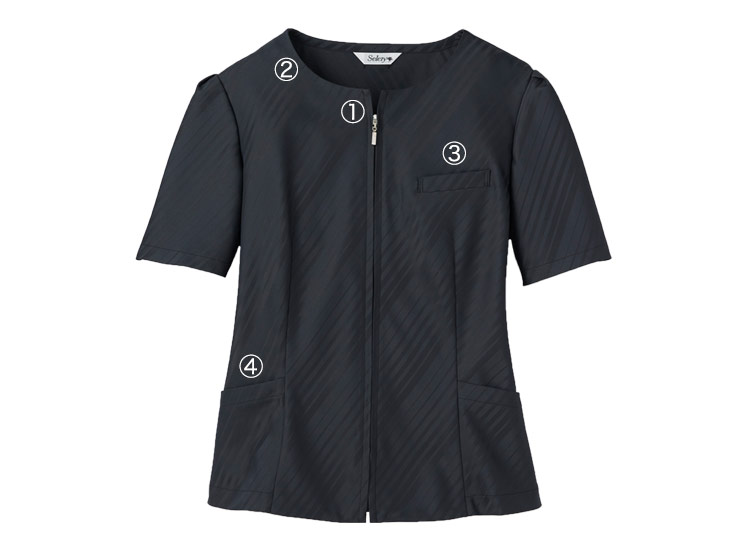 - 左胸ポケット、アクセサリーホール、両腰ポケット