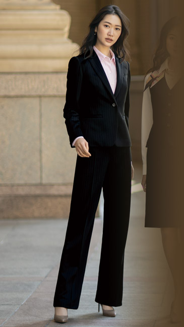 気品高く寄り添う事務服は、きちんと見える信頼スタイルと誠実感を印象づけ、