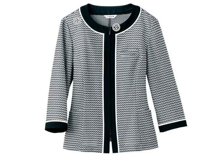 ジグザク模様のジャガードニット素材の七分袖オーバーブラウス。ドライな肌触りで通気性がよく、清涼感たっぷりです。抗菌・抗ウイルス効果もあり安心して着用いただけます。