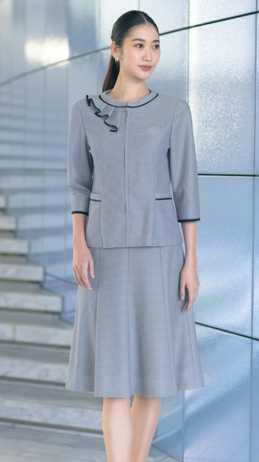 フリル襟ときらりと光るファスナートップで上品な印象に。