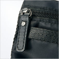 外側のファスナートップ部分に煌めく、スワロフスキー・クリスタルに注目。
