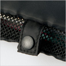 ドットボタン留めは、内側に物を入れても安心なマチ設計。