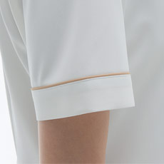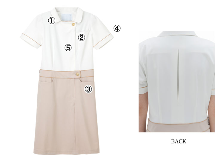ナガイレーベンのハイセンス、ハイクオリティ、ハイグレード「Seed℃(シードシー)」。 おもてなしスタイルをアップするBeads Berryシリーズから、接触冷感でひんやり涼しいワンピースが登場。 肌側には冷感が優れた高吸湿性能のキュプラを挿入する事で、肌触りが爽やかで涼しさを感じる事ができます。シンプルですっきりした襟にエレガントな配色の女性らしいシルエット。ウエストベルトのパイピングがポイントになっています。