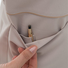 - 左胸ポケット、両腰ポケット、後ろ身頃ボックスプリーツ