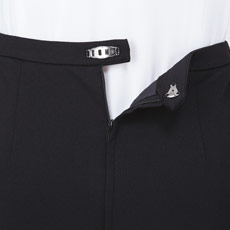 ファスナーの位置は後中心。ホックはウエストのサイズに合わせて調節できる三段カン仕様。
