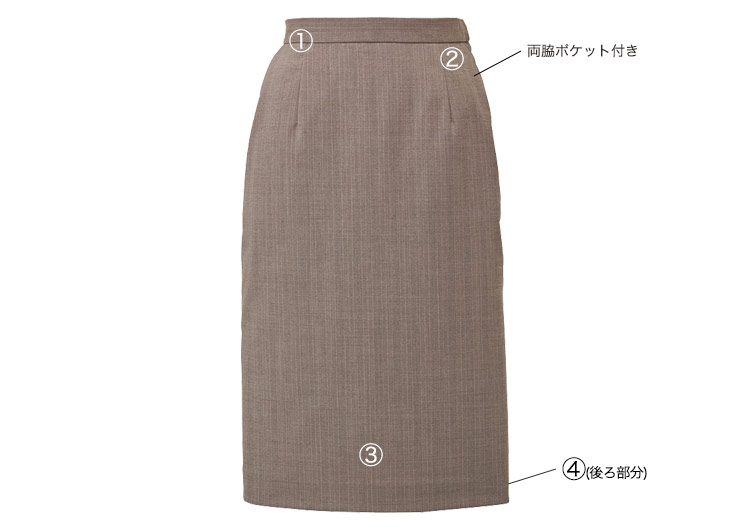 スカート丈(ベルト下) | 56 | 57 | 58 | 58 | 59 | 59 | 60 | 60 | 60 | 60 |