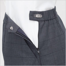 ホックはウエストサイズに合わせて3段階の調節が可能な3段カン+左脇あきのサイドファスナー。