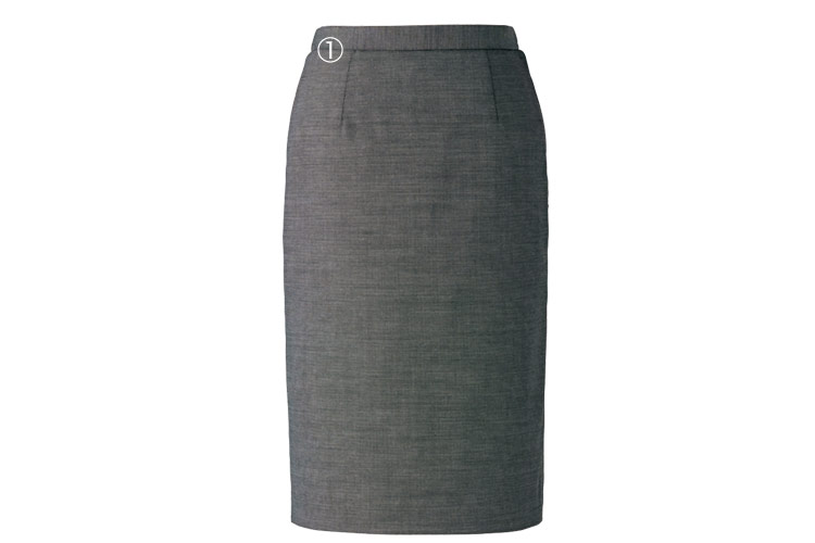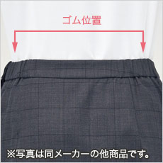 外から見てもゴムのシワが分かりにくい両脇シークレットゴム仕様のスカート。座った時、お腹周りを圧迫することなく、フロント部分をすっきり見せます。