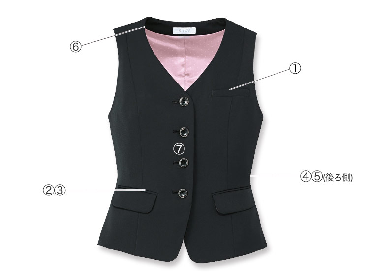 ベストの襟元に付いたスカーフループで、スカーフ取り外しの手間もナシ!