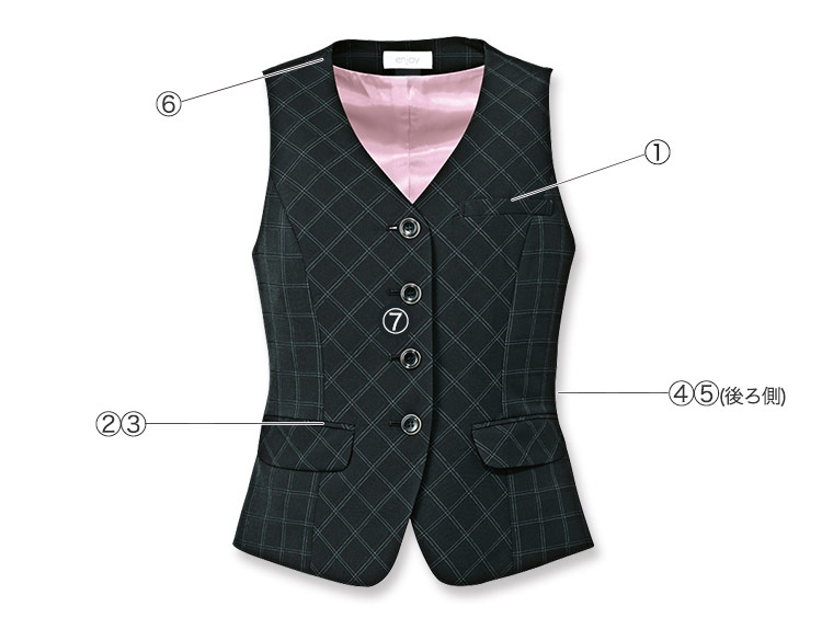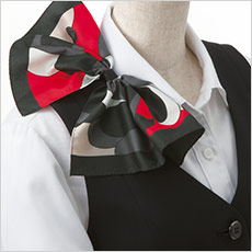 ベストの襟元に付いたスカーフループで、スカーフ取り外しの手間もナシ!
