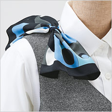 スカーフにループを通すだけできれいな形が完成。首に巻かないので快適。