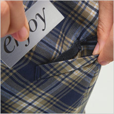 名札をつける位置が選べる、2つのループ付きの胸ポケット。ポケット内側は、補強布で耐久性のある仕様に。
