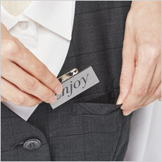 名札をつけるのに便利な、Wネームループ付き胸ポケット。