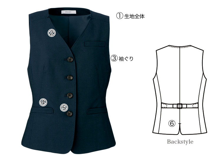 高級生地のリーディングカンパニーである御幸毛織と共同開発した、ハイクオリティーな生地を採用したベスト。耐久性があり、シワにもなりにくいです。
