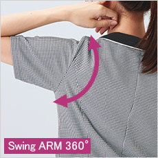 腕の上げ下げがラクで窮屈感のないスイングアーム仕様。