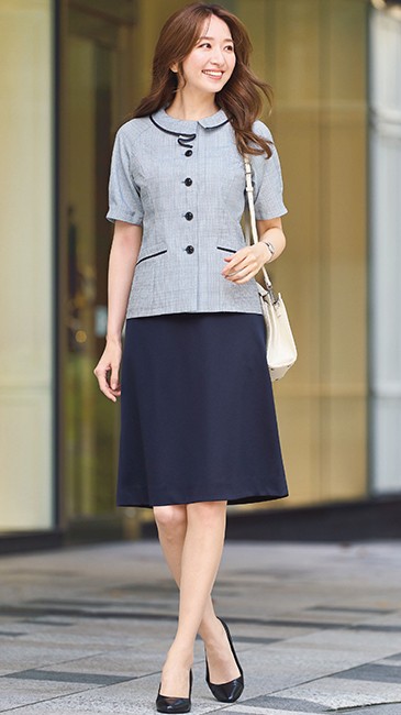 清楚なのに華やかなツイード風チェックのオーバーブラウスは、汗のニオイや汚れを抑え、ひんやりしてベタつかない清涼素材。前かがみの姿勢や丸くなりがちな背中を意識させるような6面体のパネル使いで、思わず姿勢を伸ばしたくなります。