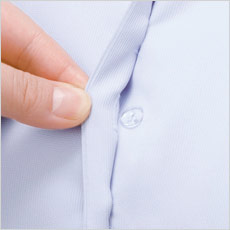 胸もとに内掛けのバストケアボタンを採用。ボタンの隙間から下着が見えるのを防ぐ、うれしい工夫です。