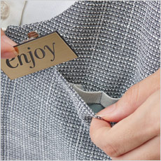 太いスラブ糸を贅沢に使用した、表情豊かなサマーツイード。柔らかな風合いで心地よい肌当たりを実現しました。 高い通気性に加え、キシリトールの涼感加工を施し、いつでもひんやり快適。お手入れも簡単なオリジナル素材です。