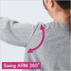 生地に伸縮性は無さそうですが、腕が動かしやすくて窮屈ではありません。