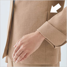 - 大容量ポケット、背裏なし、袖裏なし、スカーフループ、Wネームループ付き胸ポケット、消臭テープ(脇下)、肩パットなし、袖口折返し可能、ハンドメイド風AMFステッチ