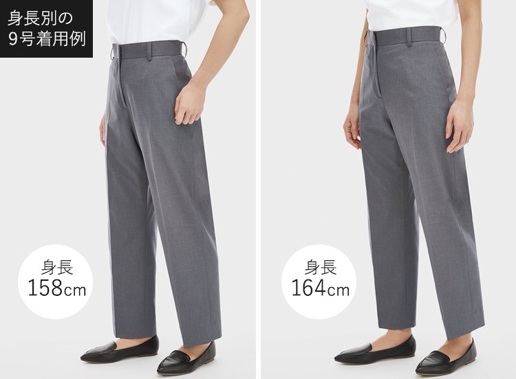 ストンときれいに落ちるストレートシルエットに近いテーパードパンツは、どんな身長や体型にも合う、計算し尽くされた丈感がポイントです。すでに裾上げがされているので、届いたその日から美しく着用することができます。