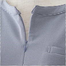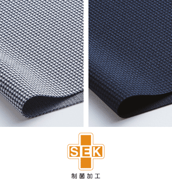 ジャパンメイドならではの高品質で美しい千鳥柄ニット素材。SEKマーク付き制菌加工(オレンジSEK)により、部屋干しのニオイを防ぎ、一日中快適な着心地です。吸水速乾、ノンアイロンでお手入れも簡単。