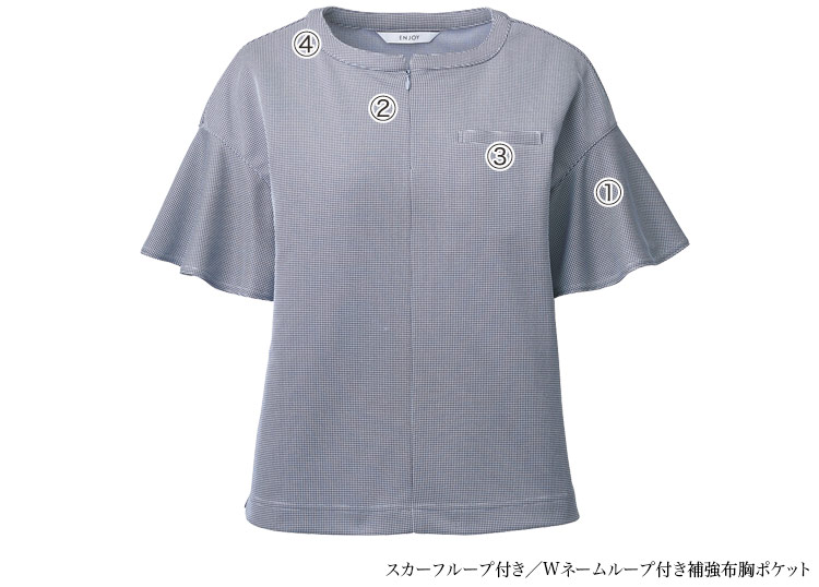ストレッチが効いていてとても着やすいです。袖がフリルになっているので二の腕が隠れるのも嬉しいポイントです。薄手なので涼しいし、すぐ乾いてシワも気になりません。動きやすいのがいいけど可愛さも欲しい!という制服をお探しの方にはぴったりかと思います。