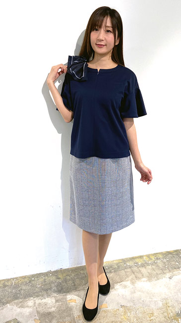 サラサラした素材で落ち感もあるのでピタッとしなくて涼しく、体型も隠せるので言うことなしです!カラーは迷いましたが手持ちのスカートが黒と紺なのでグレーを選びました。グレーですが細かな千鳥柄なので上品です。カジュアルさもあり動きやすいので事務服事務服していなくて化粧品売り場の方やエスティシャンの方の雰囲気っぽいなと個人的には思います。