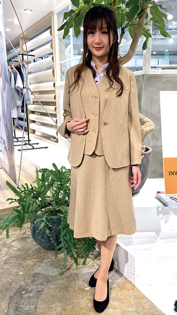SY加工をほどこすことによって、天日干し風のナチュラルな表情に仕上げています。ふくらみのあるエアリーな風合いで、夏も快適なドライ感を実現しました。