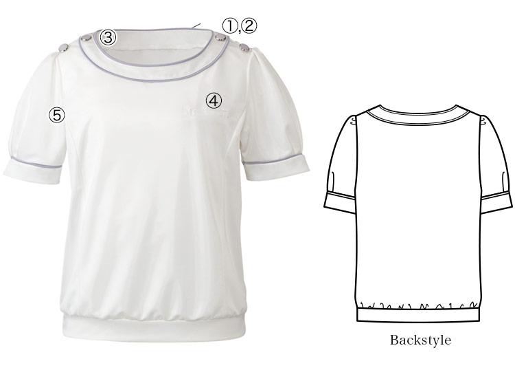 サービスシーンで活躍するプロのために生まれた「Noir TOPS」セレクション。華やかなツヤ感と腕をスッキリみせるパフスリーブが魅力の半袖プルオーバー。優秀な機能性で快適性も保ちます。