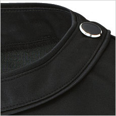 襟ぐりのパイピングと肩部分の飾りボタンがアクセント。(ブラック)