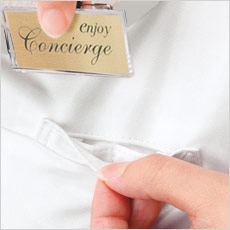 名札を付ける位置が選べる、2つのループ付き胸ポケット。内側を補強し、耐久性にも配慮しました。また、袋布はベージュで透けにくい仕様です。