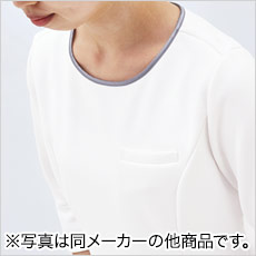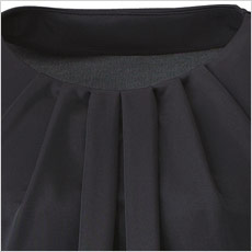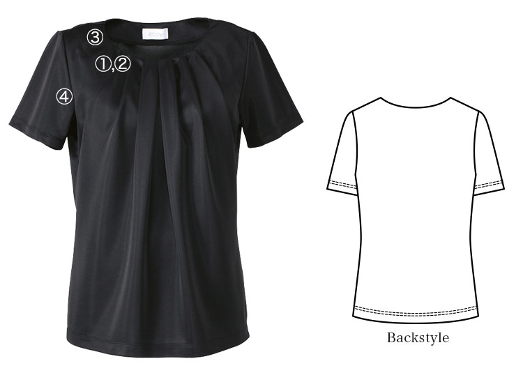 サービスシーンで活躍するプロのために生まれた「Noir TOPS」セレクション。サテンの光沢と胸元のタックが華やかな半袖プルオーバー。優秀な機能性で快適性も保ちます。