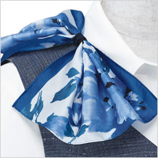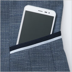 襟の内側にスカーフを通せるスカーフループがついていて、ワンタッチで華やかなコーディネートが可能