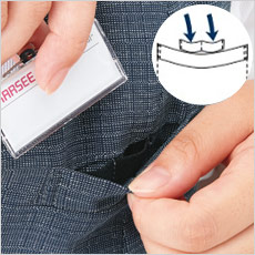 名札をつけるのに便利な、Wネームループ付き胸ポケット