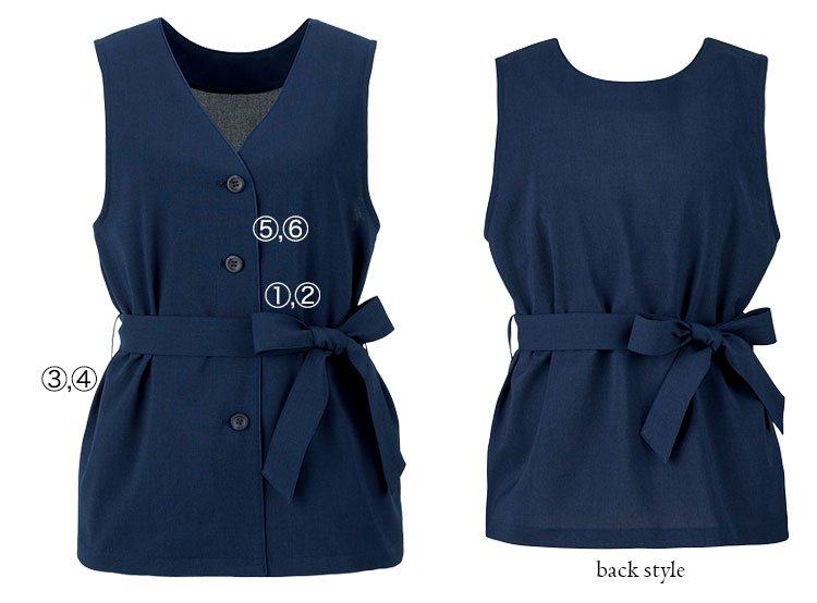 前と後ろ、2通り楽しめるベルト付き2Wayベスト。バリエーション豊かなスタイリングができ、職種の違いを1つの制服で表現できます。安心の制菌・抗ウイルス加工で医療関係の方にもおすすめです!