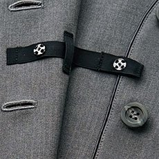 第1・2ボタンを留めた状態でかぶり、第3・4ボタンを留めます。