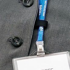 裏側のテープで、カードホルダーなどが胸元でぶらつくのを防ぐストラップストッパー付き。