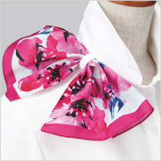 襟元に、スカーフのズレを防ぐループが付いています。ワンタッチで形が決まります。