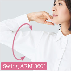 腕、肩の動きがラクラク。ブラウスの裾がスカートから出てこないため、着くずれの不安もありません。