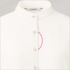 胸元からインナーが見えないよう、ボタンの間隔を狭くしたバストケアピッチ。