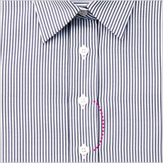 胸元からインナーが見えないよう、ボタンの間隔を狭くしたバストケアピッチ。