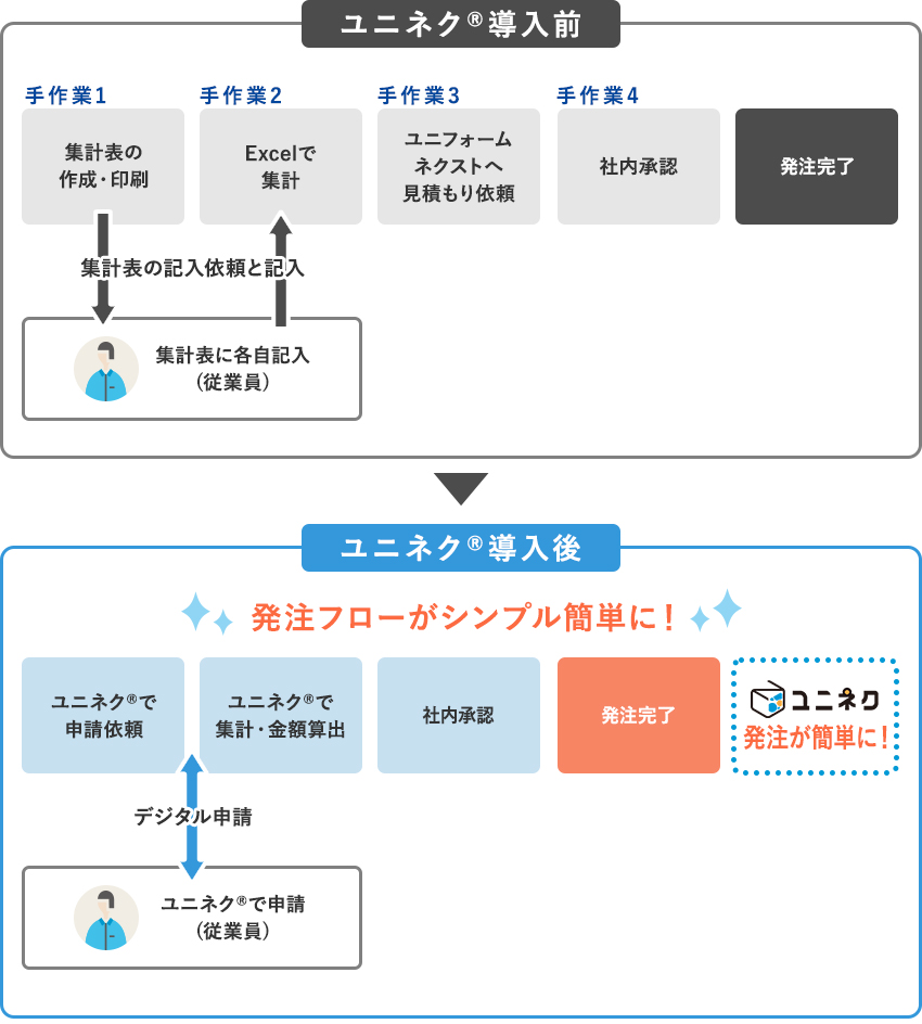 今は見積もりをしなくてもユニネク®上で商品金額が分かるから、それをもとに社内確認が出来て便利になりました。
