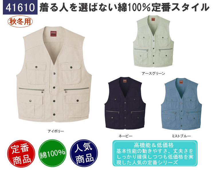 作早2015AW,半袖ブルゾン,自重堂,秋冬,ベスト,綿100%,鐵工,機械,鐵工,溶接,ミストブルー,アースグリーン,ネービー,アイボリー,安い,大工,作業用ベスト