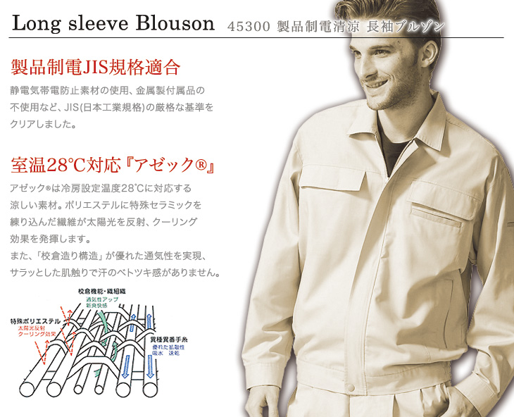 [春夏用]製品制電清涼長袖長袖ブルゾン[JIS T8118適合](01-45300)