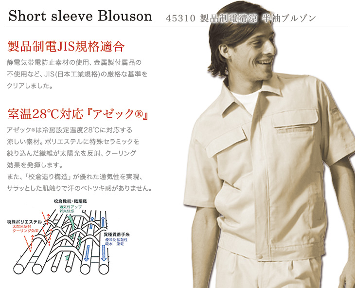 [春夏用]製品制電清涼半袖ブルゾン[JIS T8118適合](01-45310)