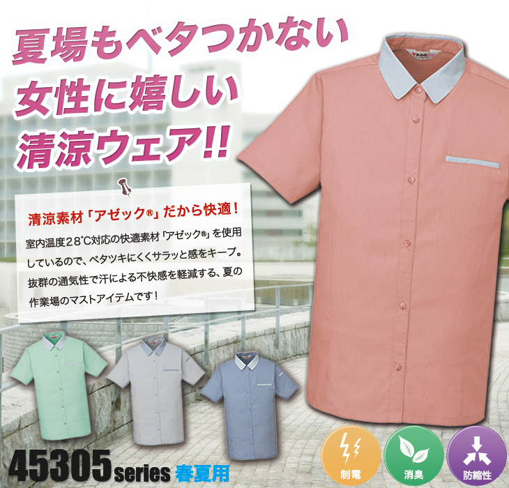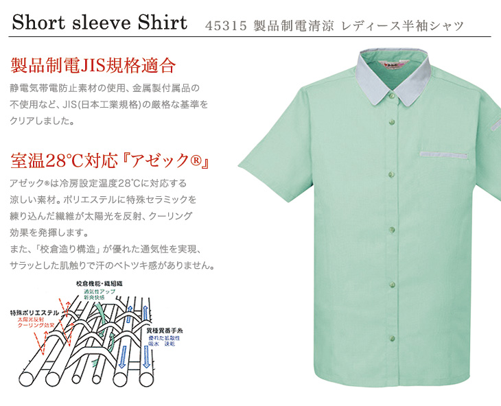 [春夏用]製品制電清涼レディース半袖シャツ[JIS T8118適合][女性用](01-45315)
