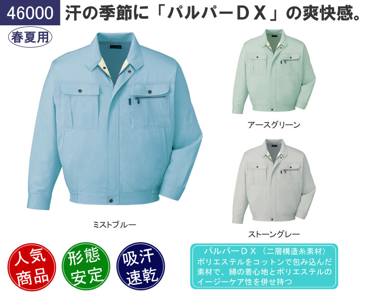 長袖ブルゾン,大きい,46000,ジャンパー,自重堂,春夏,形態安定,パルパー,6L,アースグリーン,ストーングレー,ミストブルー,建設,設備,運送,営業