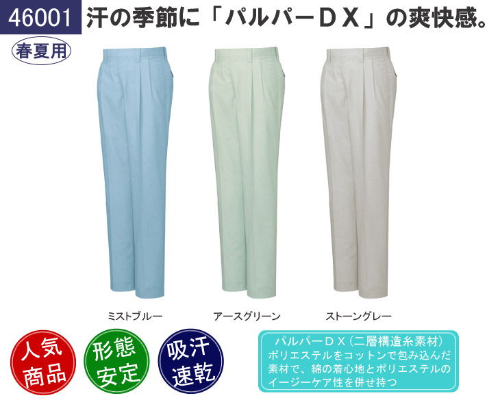 46000,パンツ,自重堂,春夏,ツータック,大きい,形態安定,パルパー,アースグリーン,ストーングレー,ミストブルー,建設,設備,運送,営業